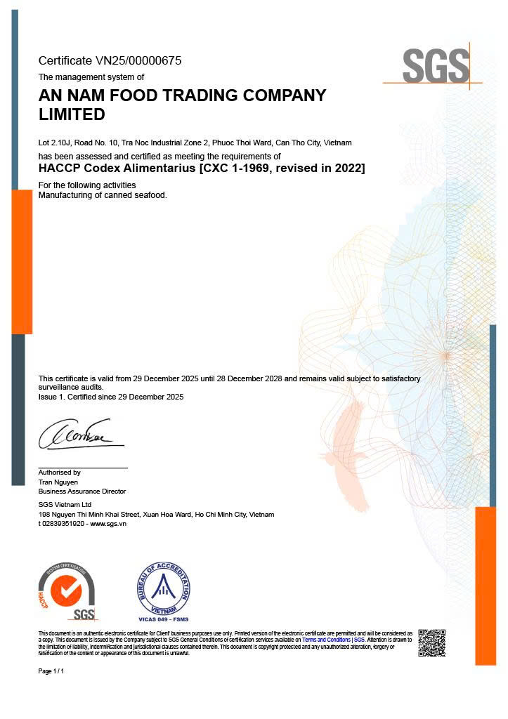 Với định hướng phát triển bền vững và tiêu chuẩn quốc tế, An Nam Food tự hào là một trong những doanh nghiệp uy tín trong lĩnh vực sản xuất thủy hải sản đóng hộp tại Việt Nam.