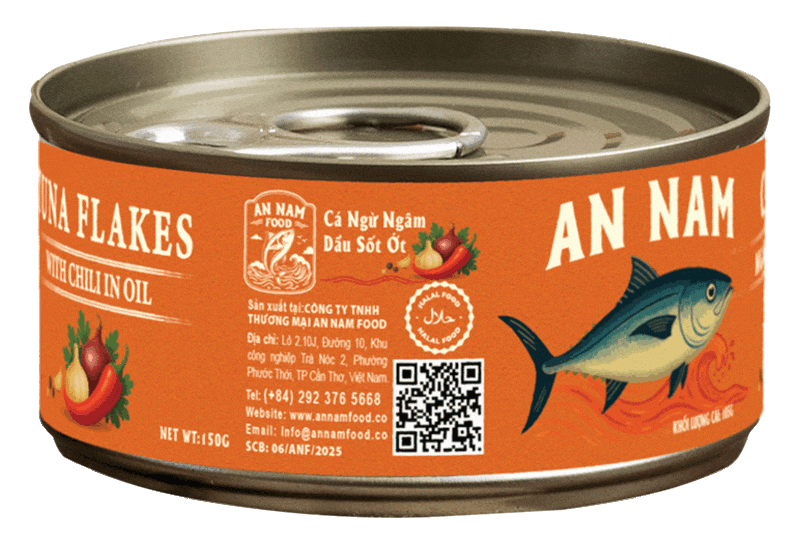 An Nam Tuna Flakes With Chili In Oil features thick cuts of ocean-caught tuna soaked in light vegetable oil and infused with An Nam’s signature chili sauce—made from fresh chili, soy sauce, sautéed garlic, and shallots. The result is a rich, savory flavor with a gentle heat and melt-in-your-mouth texture—irresistibly delicious, nutritious, and ready to enjoy.