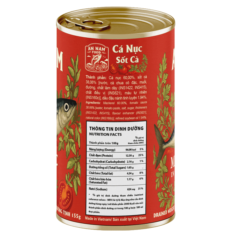 An Nam Mackerel In Tomato Sauce is more than a dish; it’s a nostalgic, refined culinary experience. Made from carefully selected fresh mackerel caught in tropical waters, each piece is slow-cooked in a smooth tomato sauce, enhanced with fragrant sautéed garlic, onion and a medley of traditional Vietnamese spices. The result is a simple yet deeply satisfying flavor — like a comforting homemade meal from mom’s kitchen.