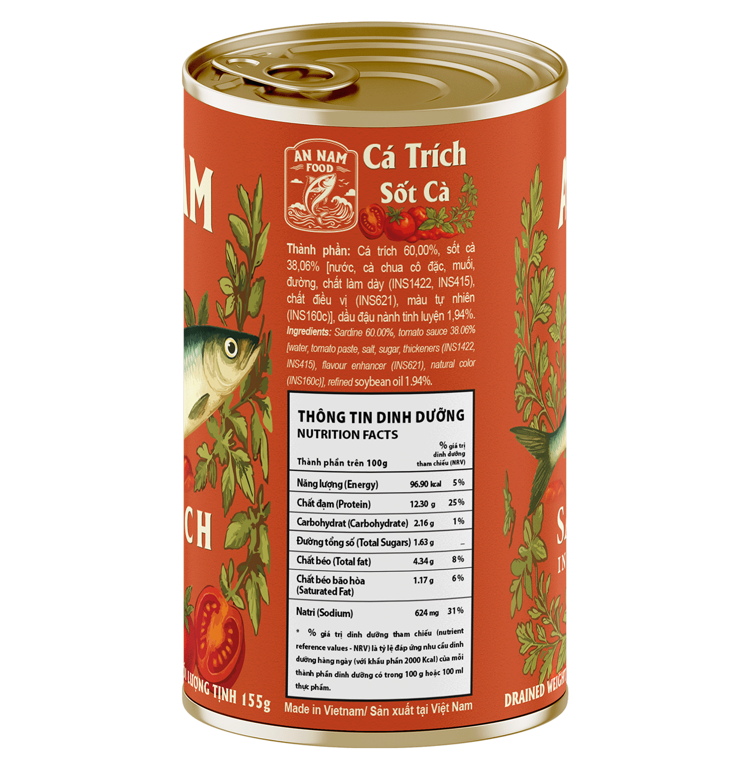 Cá Trích Sốt Cà An Nam là sự hòa quyện tuyệt vời giữa vị biển tinh khiết của Cá Trích tươi – được đánh bắt tự nhiên từ vùng biển sạch – cùng lớp Sốt Cà Chua chín mọng được nấu kỹ theo công thức riêng, tạo nên món ăn tiện lợi, đậm đà và ngon miệng cho mọi bữa ăn.